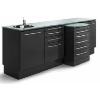 Комплект мебели Winn Pad 2080х500хH865/905 мм. С единой стеклянной столешницей с интегрированным плинтусом и металлической мойкой в составе: WY124 тумба с мойкой из нержавеющей стали, смеситель и корзина для мусора. WY104 тумба с 4 выдвижными ящиками: 1шт.х60,2шт.х120,1шт.360 мм. WS020 ниша для подкатного модуля. WY306 подкатной модуль с 6 выдвижными ящиками: 2шт.х60,3шт.х120,1шт.х180 мм. WY101 тумба с открывающейся дверцей и встраиваемыми стеклянными полками.